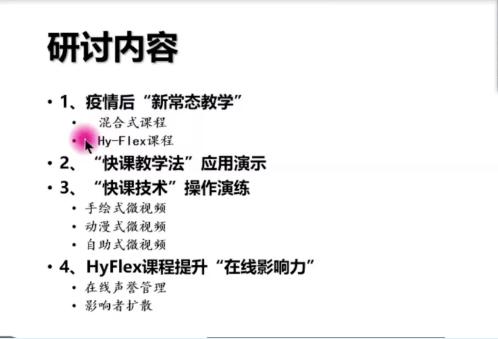 8日下午,北京大学教育学院赵国栋教授作了《疫情后新常态教学:快课教学法创建Hy-Flex课程》专题报告。报告以北京大学十余年所积累的教学信息化实践为基础,利用简捷实用的“快课技术”为解决方案,系统展示“快课教学法”(也称“云课堂教学法”),助力教师实现利用手机和电脑自己动手制作微课、自助录课和实施混合式教学。培训过程中,赵教授现场演示当前国际上流行的快课技术常用工具:文字语音转换、动漫助教设计、手绘视频制作、手机交互设计等。
