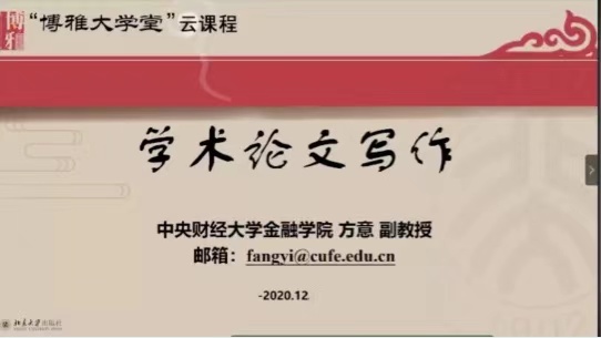 而后,中央财经大学金融学院方意教授作了《学术论文写作》专题报告。报告从以下十三个模块:如何选题、如何查找文献、如何阅读文献、如何处理数据、论文写作顺序、题目写作、摘要及关键词写作、引言写作、实证方法及数据写作、文章主体结果写作、文章结论及政策建议写作、参考文献列表写作、文章修改与投稿等逐一举例详解。另外,方教授根据自身写作和投稿经验,重点阐述了论文写作中如何创新、如何根据文章内容选择投稿期刊、投稿中常见的几种错误方法以及总结了在文章结论中的一些禁忌事项等。