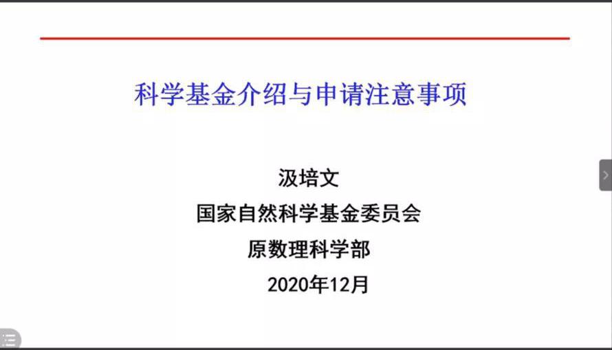 4日上午,国家自然科学基金委员会数理科学部原常务副主任汲培文研究员作了《科学基金介绍与申请注意事项》专题报告。报告主要分为五部分:一、科学基金制及实施情况;二、国家自然科学基金委员会介绍;三、项目系列、特征与评审侧重点;四、申请基金时应注意事项;五、申请书撰写要点。重点强调了要相信科学评审的公正;要相信自己,尊重科学,不做任何非学术的努力;要基于自己的能力写最好的申请,基于自己的实力做最好的研究。