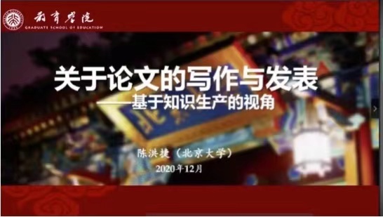 7日下午,北京大学教育学院陈洪捷教授作了《关于论文的写作与发表——基于知识生产的视角》专题报告。报告分为三部分:为何写论文、如何写论文和如何发论文。陈教授详细地阐述了学术论文的写作思路、写作规范、写作与修改等方面,并针对常见的四类论文问题:有对象无问题、有材料无观点、有观点无论证、有方法无论点作了举例说明。