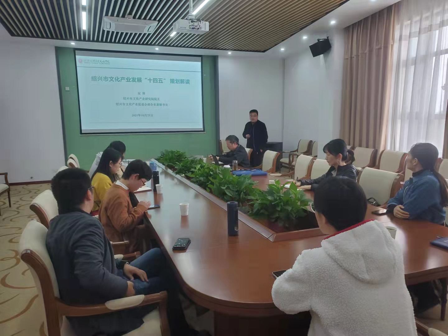 10月21日下午,科研与对外合作处邀请学院绍兴市文化产业研究院应锋院长开展《绍兴市文化产业发展“十四五”规划》解读的学术交流活动,我院建筑工程分院、经济管理分院、信息与机电工程分院、纺织服装与艺术设计分院等10余名老师参加本次活动。