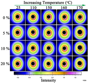 1 特定牵伸和加热诱导静电纺纤维二维广角X光衍射图
