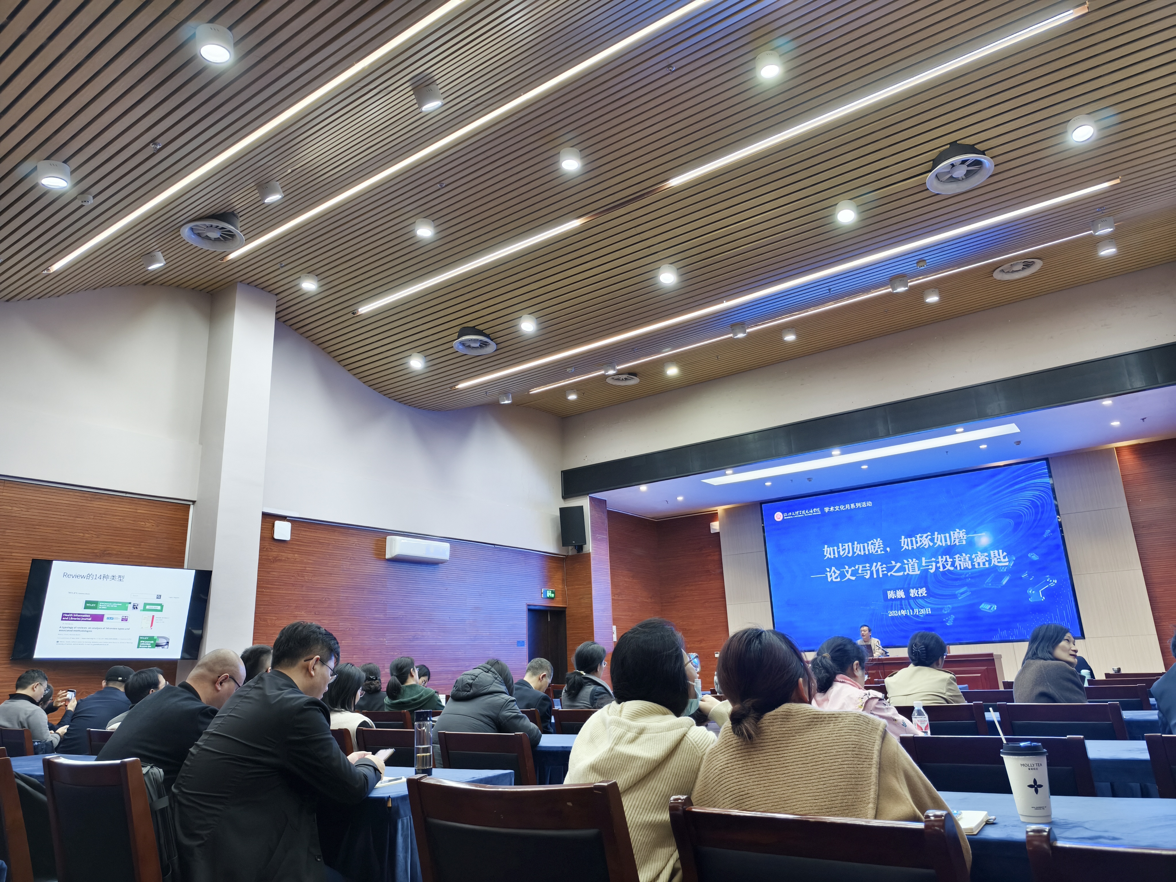 陈巍教授从学术研究的意义、论文选题与写作类型、写作前的准备等方面进行了分享交流。陈教授通过具体案例,分别从审稿人和读者角度出发详细地讲述了如何撰写高质量的学术论文,他指出作者不仅要在文章的标题、摘要和引言部分传达研究的核心贡献,迅速吸引审稿人的注意,同时,文章也应以读者为核心进行阐述,确保信息的呈现符合读者的认知习惯,降低理解难度。