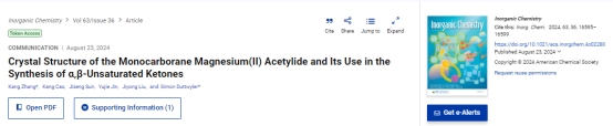 日前,医药与健康分院张康博士在国际著名期刊Inorganic Chemistry JCR Q1, 中科院1区,Top期刊,NI期刊,南大版学科卓越期刊上发表了题为“Crystal Structure of the Monocarborane Magnesium(II) Acetylide and Its Use in the Synthesis of α,β-Unsaturated Ketones”的研究论文,这是我院首次以绍兴文理学院元培学院为第一单位,在南大版学科卓越期刊上成功发表的学术成果,标志着我院科研实力和学术影响力的又一次重要突破
