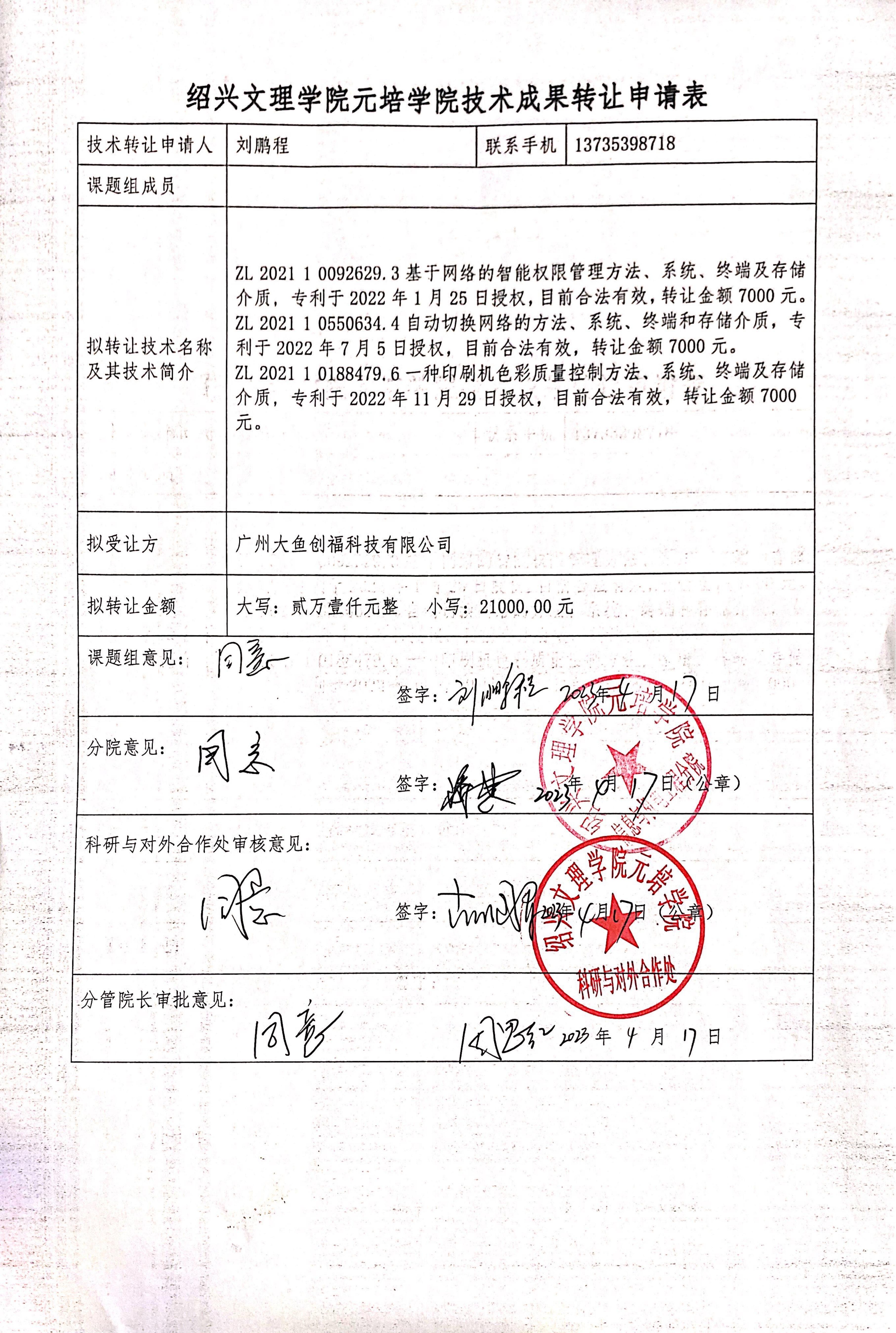 经教师申报,科研与对外合作处审核,“基于网络的智能权限管理方法、系统、终端及存储介质”、“自动切换网络的方法、系统、终端和存储介质”、“一种印刷机色彩质量控制方法、系统、终端及存储介质”共三项专利拟转让。内容详见附件,现予以公示,公示时间为十五天(4月17日 — 5月1日)。公示期间,如有异议,请及时与我处联系。