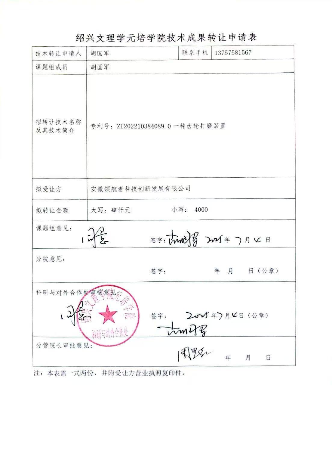 经教师申报,科研与对外合作处审核,“一种齿轮打磨装置”专利拟转让。内容详见附件,现予以公示,公示时间为十五天(2025年7月4日 —2025年 7月18日)。公示期间,如有异议,请及时与我处联系。